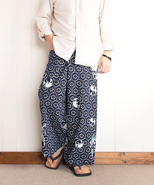 Mon-Banaではおなじみの和柄のインディゴ染めタイパンツシリーズ。
