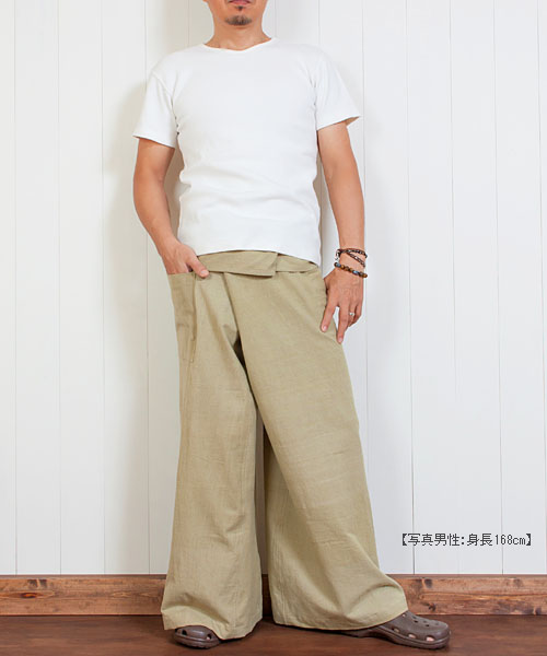 脚幅広め、総丈も長め のゆったりワイドなタイパンツです。