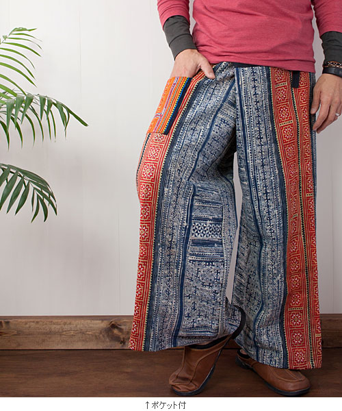 1つは、とにかくモン族伝統のろうけつ染め模様が美しいタイパンツです。