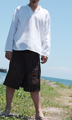 モン族古布のタイパンツのショート丈。