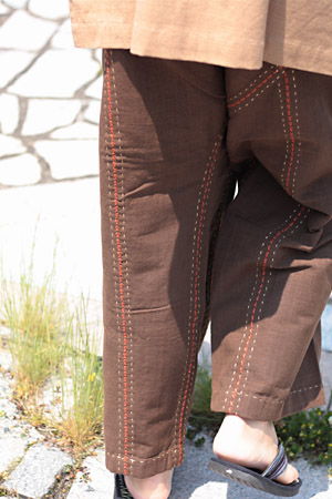 ↓↓↓ 下の「手縫いタイパンツ」は、縫い糸も縫い目もアクセント風な仕立てですよ。