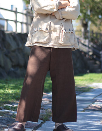 マシン仕上げとは違う、ハンドメイド感が優しいタイパンツ。