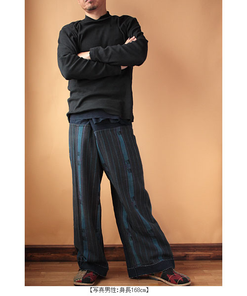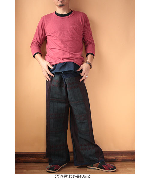 手縫いで仕立てたクールなエスニックタイパンツ。