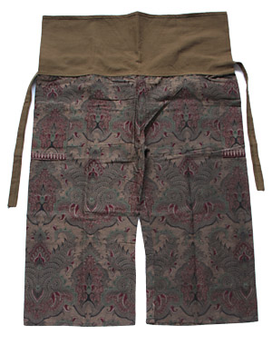 ウエストを表に折り返すと、中側からモン族古布が現れるのさ。
